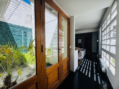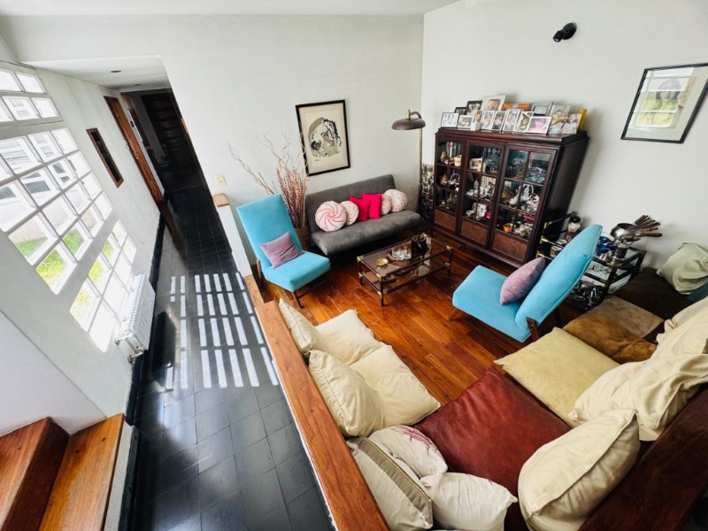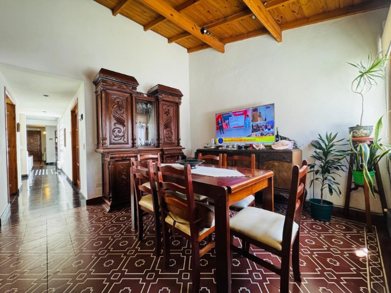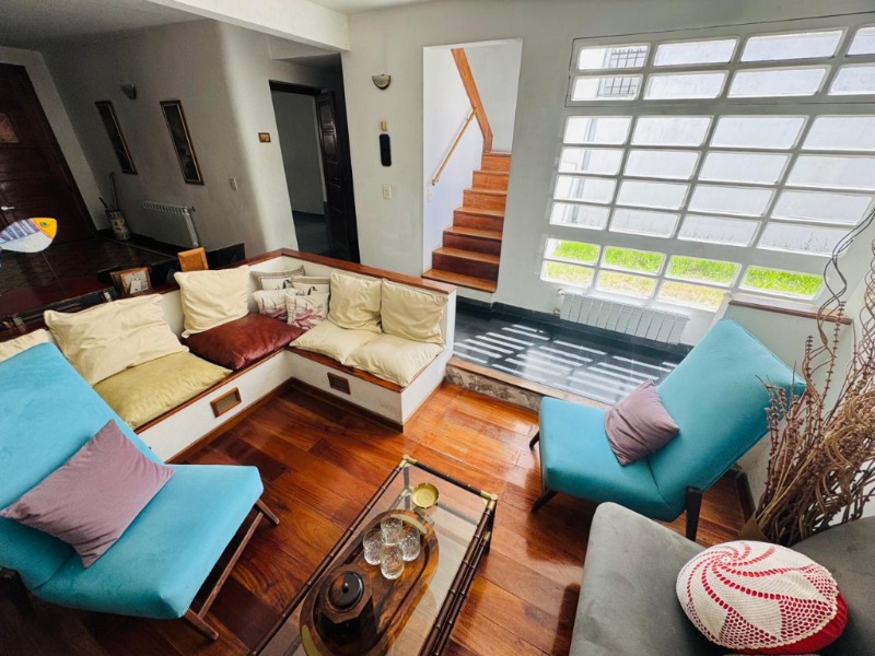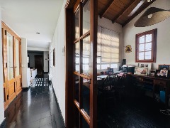 Excelente casa de seis ambientes con garage desarrollada en dos plantas y emplazada sobre un lote de 8,66x43,30 con 374,97m2 totales. En planta baja se ingresa a un generoso estar con sector de living en desnivel y toilette de recepción, por pasillo de distribución se encuentra un patio interno, dos estudios y la cocina-comedor con salida al jardín. Cuenta con un amplio parque al fondo, quincho con baño completo y lavadero.