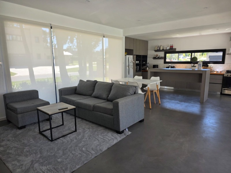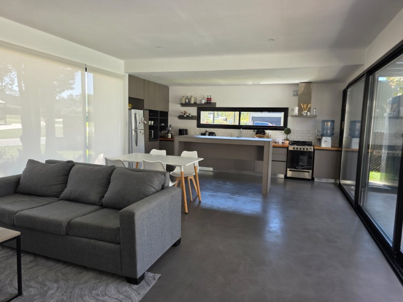 En el Barrio Privado Las Prunas, ofrecemos a la venta una casa de cuatro ambientes moderna desarrollada en planta baja. Al ingresar encontramos un generoso living-comedor con grandes ventanales al frente y salida hacia la galería exterior con parrilla, cocina integrada con isla y toilette de recepción. Posee lavadero separado con salida al exterior. Por pasillo de distribución se encuentran tres dormitorios, uno de ellos en suite con vestidor, y un segundo baño completo. Además cuenta con un amplio parque con piscina. Detalles a destacar, la propiedad cuenta con calefacción por tiro balanceado y se encuentra en muy buen estado. Toma departamento en menor valor a evaluar por el propietario. No dude en consultarnos y concertar una visita.