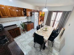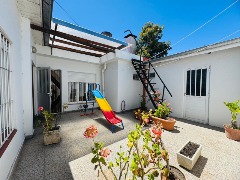 Casa de cinco ambientes a la venta, desarrollada en dos plantas sobre un lote de 183m2. En planta baja se accede por el garage/ quincho para tres autos con cocina completa con barra y un baño completo. Cuenta con living-comedor al frente, cocina separada con comedor diario, salida al patio con acceso a la terraza con baulera. Además posee dos dormitorios con placard y un segundo baño completo. En planta alta se encuentran otros dos dormitorios con placard.