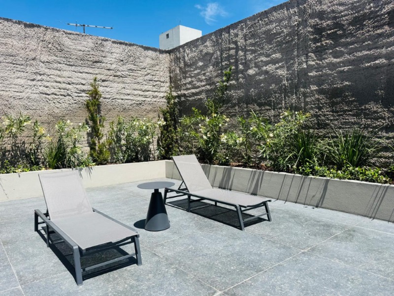 Departamento de dos ambientes a estrenar en alquiler por 12 meses con cochera cubierta, baulera y terraza privada. Al ingresar encontramos un cómodo living-comedor con cocina integrada, salida al balcón corrido con vista al contra frente abierto y toilette de recepción. Cuenta con un dormitorio en suite con pequeño vestidor y acceso a la terraza privada con parrilla desde el balcón.