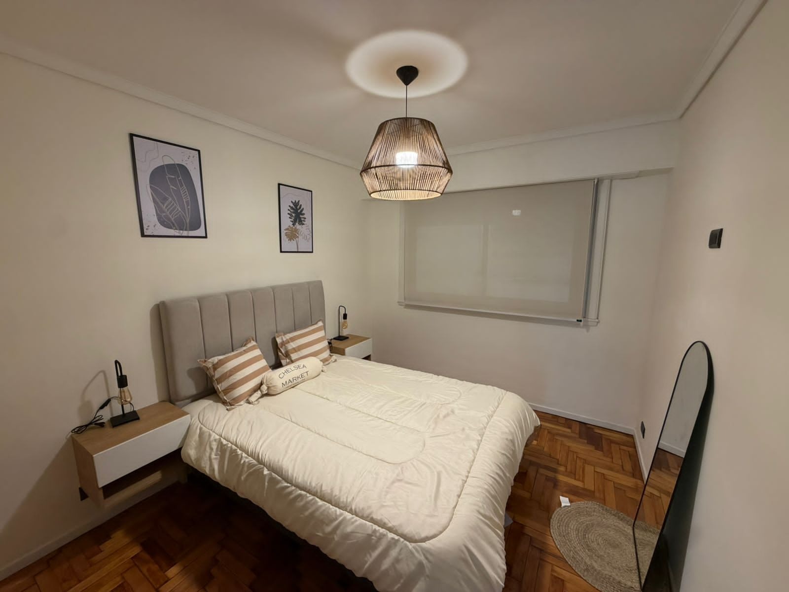 Departamento de dos ambientes totalmente reciclado, ubicado en un tercer piso a la calle. Al ingresar encontramos un amplio living-comedor con balcón saliente, cocina separada con lavarropas, un baño completo con ducha y dormitorio con placard empotrado al contra frente.
