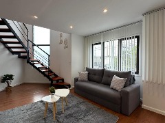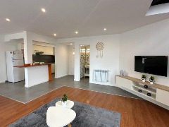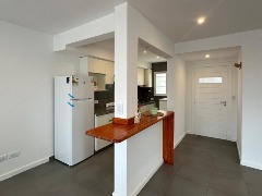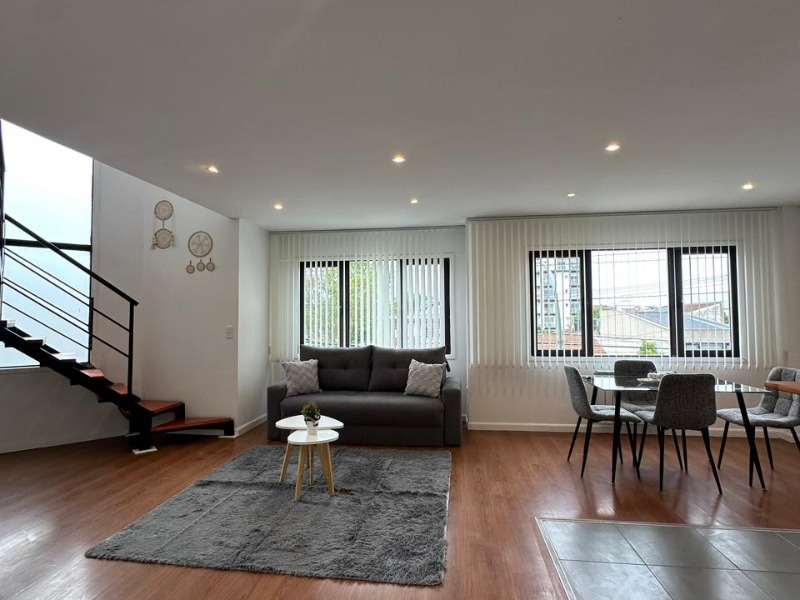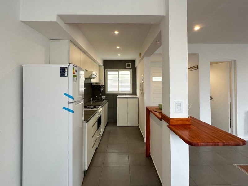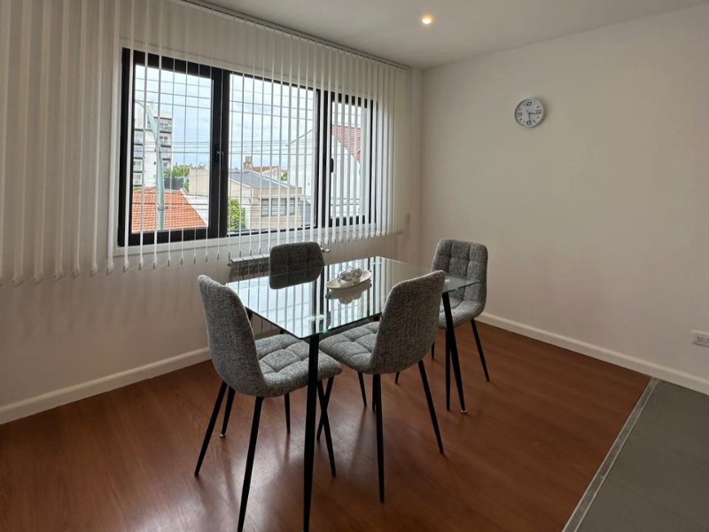 Departamento tipo dúplex reciclado, ubicado en un primer piso por escalera con cochera. Al ingresar encontramos un gran living-comedor con ventanal al frente, cocina integrada con barra desayunadora y un toilette de recepción. En planta alta se encuentran dos cómodos dormitorios con placard, un espacio de escritorio y un baño completo con bañera.