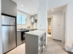 Departamento de dos ambientes totalmente reciclado, ubicado en un tercer piso a la calle. Cuenta con living-comedor con balcón saliente, cocina integrada con barra desayunadora y conexión para lavarropas, un baño completo con ducha y dormitorio con placard a medida.
