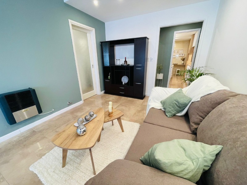 DEPARTAMENTO DE TRES AMBIENTES CON DEPENDENCIA TOTALMENTE RECICLADO, UBICADO EN UN SEGUNDO PISO A LA CALLE. AL INGRESAR ENCONTRAMOS UN GENEROSO LIVING-COMEDOR CON BALCON CORRIDO AL FRENTE, COCINA SEPARADA CON LAVADERO Y PEQUEÑA BARRA DESAYUNADORA, AMPLIA DEPENDENCIA INTEGRADA Y UN TOILETTE DE RECEPCION. POR PASILLO DE DISTRIBUCION ENTRONTRAMOS UN BALO COMPLETO Y DOS DORMITORIOS, UNO AL FRENTE Y OTRO AL CONRE FRENTE AMBOS CON PLACARD.