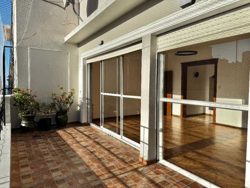 Departamento de cuatro ambientes con gran balcón terraza al frente, ubicado en un séptimo piso a la calle. Al ingresar encontramos un espacioso living-comedor con salida al balcón terraza, cocina-comedor separada con barra desayunadora y espacio para lavarropas. Por pasillo de distribución se encuentran tres dormitorios con placard, pisos parquet y dos baños completos, uno con ducha y el otro con hidromasaje.