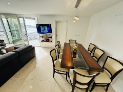 En el moderno edificio AQUA disponemos de este hermoso departamento de tres ambientes con vista plena al mar y cochera cubierta. Al ingresar encontramos un amplio living-comedor con grandes ventanales y salida al balcón terraza con inmejorable vista panorámica de la ciudad y el mar. Consta de cocina separada con espacio para lavarropas, un baño completo con ducha y dos amplios dormitorios con ventanales de piso a techo. Además el principal posee baño en suite y vestidor.