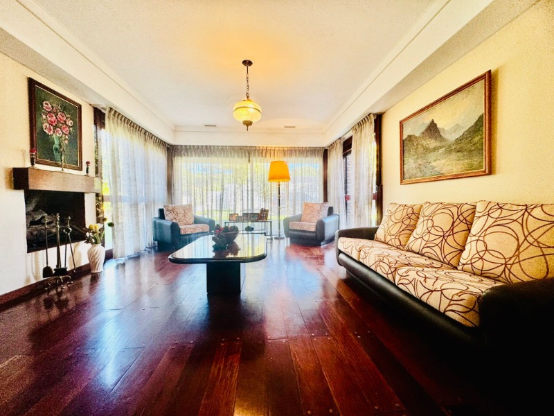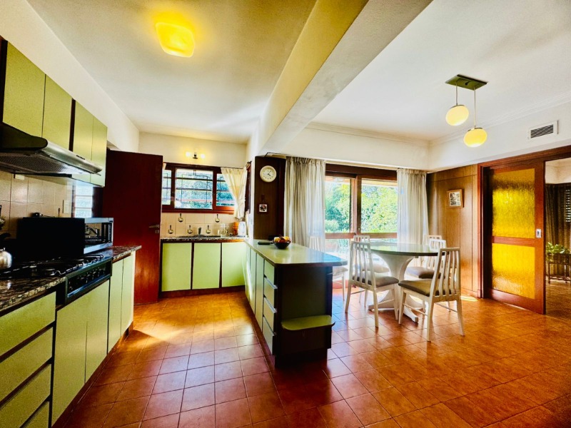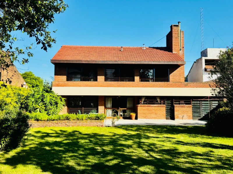 En el excelente barrio Pinos de Anchorena, disponemos de un chalet de cinco ambientes emplazado sobre un lote de 850m2 y con 271m2 cubiertos. Se desarrolla en dos plantas con fachada de ladrillo a la vista con jardín y trotadora al frente. Al ingresar encontramos un hall de recepción, generoso living en desnivel con hogar y pisos de madera tarugada, comedor con salida al gran parque al fondo, amplia cocina-comedor con península, lavadero separado y toilette de recepción. En planta baja además cuenta con garage para dos autos con parrilla y dependencia con baño. En planta alta por pasillo de distribución se encuentran tres dormitorios con salida a un balcón al frente, uno de ellos en suite con vestidor, y un baño completo compartido para los dormitorios restantes.