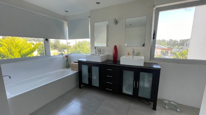 EN EL BARRIO PRIVADO ARENAS DEL SUR, ENCONTRAMOS ESTA CASA DE SEIS AMBIENTES UBICADA SOBRE UN LOTE DE 850M2 Y 280M2 CUBIERTOS. SE DESARROLLA EN DOS PLANTAS, LA PLANTA BAJA CUENTA CON RECEPCION, LIVING-COMEDOR, COCINA Y TOILETTE. A SU VEZ DISPONE DE GARAGE DOBLE/ QUINCHO CON PARRILLA Y PATIO SOLARIUM CON PISCINA CLIMATIZADA DE 15X2MTS CON SEMI CUBIERTO. EN PLANTA ALTA SE ENCUENTRAN CUATRO DORMITORIOS, EL PRINCIPAL EN SUITE CON VESTIDOR Y UN SEGUNDO BAÑO COMPLETO CON BAÑERA.