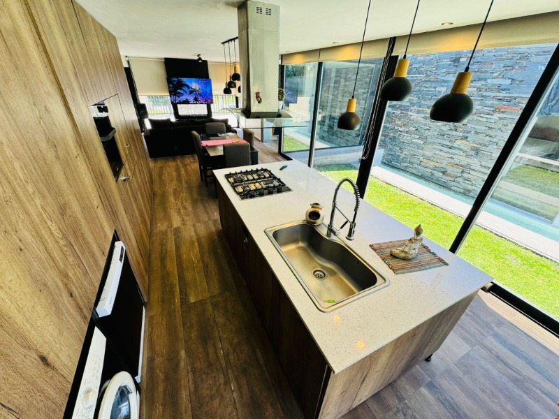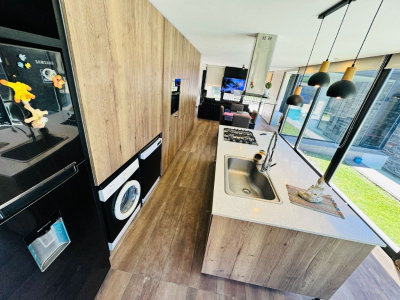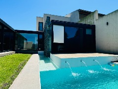 MODERNA CASA DE CUATRO AMBIENTES CON PARQUE Y PISCINA, EMPLAZADA SOBRE UN LOTE DE 450M2 Y DESARROLLADA EN DOS PLANTAS. EN PLANTA BAJA ENCONTRAMOS UN AMPLIO LIVING-COMEDOR, COCINA DE CONCEPTO ABIERTO CON GRAN ISLA, CONEXION PARA LAVARROPAS, GENEROSOS VENTANALES HACIA EL PARQUE Y TOILETTE DE RECEPCION. POR PASILLO DE DISTRIBUCION SE ACCEDE AL DORMITORIO PRINCIPAL EN SUITE CON UN IMPORTANTE VESTIDOR. GARAGE CUBIERTO CON PORTON LEVADIZO PARA DOS VEHICULOS EN PARALELO. EN LA PLANTA ALTA SE ENCUENTRAN DOS DORMITORIOS CON SALIDA AL BALCON TERRAZA Y UN BAÑO COMPLETO.