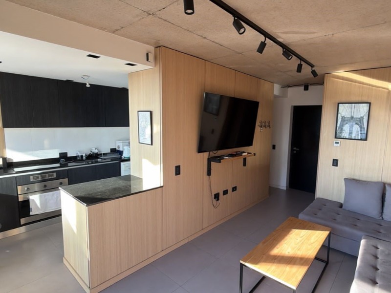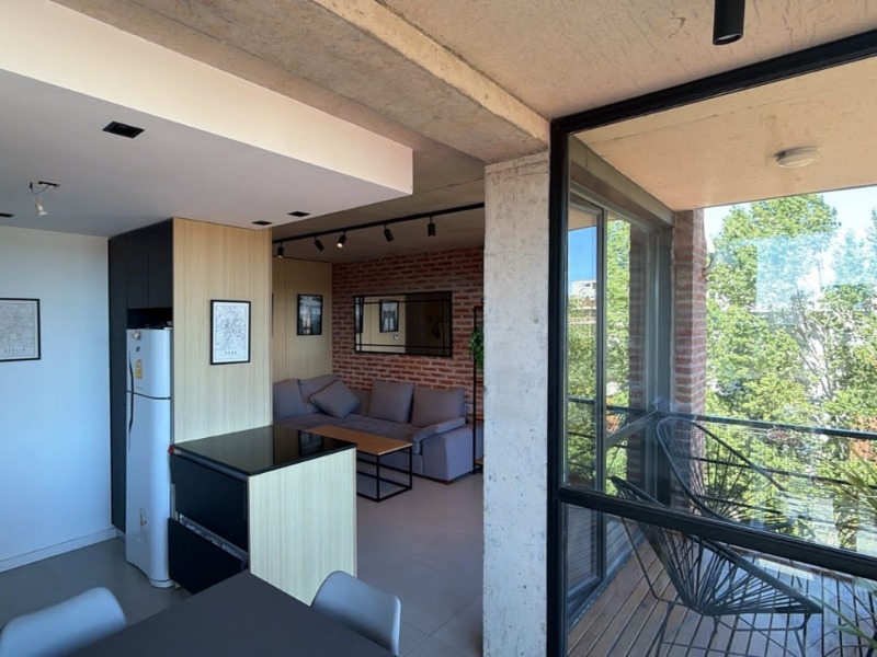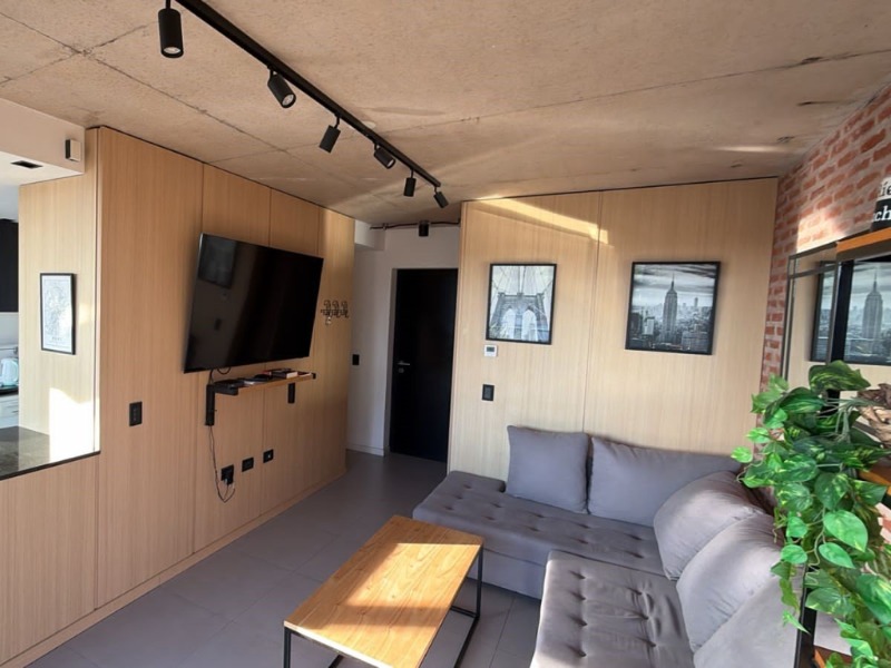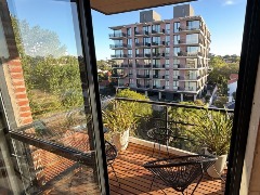 Moderno departamento de tres ambientes con cochera fija y terraza propia de 50m2, ubicado en un cuarto piso al contra frente abierto. Al ingresar encontramos un generoso living-comedor con cocina semi integrada, espacio para lavarropas, salida al balcón y un toilette de recepción. Por pasillo de distribución se encuentran amplios placares, dos dormitorios y un baño completo con ducha.